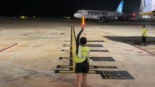 Nel corridoio dell'aeroporto internazionale di Luis Muñoz Marín a Puerto Rico, Un operatore di orientamento terreno guida accuratamente un aereo A320 di Frontier Airlines. L'operatore di orientamento terreno è specializzato nella guida degli aeromobili sulla rampa di a [...]