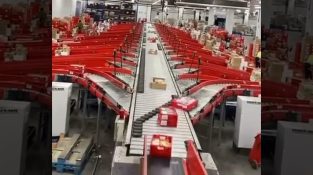 Un nastro trasportatore all'avanguardia che automatizza lo smistamento dei pacchetti in un magazzino.