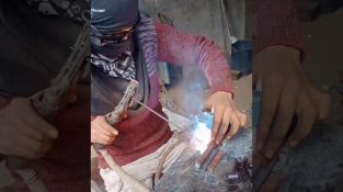 Un giovane saldatore assembla serrature con saldatura e misure di sicurezza minime.
