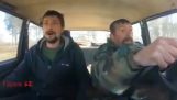 奇妙な事故だったロシアのラダ Niva のドライバー, ドライブ シャフト落ちたとき道路に何は一度レールを通過. いない非常によく正確に何が起こるようです。, しかしほとんどは振動の老朽化したシャフト単に切断された瞬間レールを通過すると. レバーのように働いたし、車の後部は解散し、車軸.