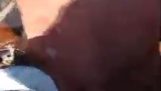 これは土曜日にありました, 03/24. 私たちの4ヶ月ジャーマンシェパードの子犬は自分の手を食べるようにしようとしています. 彼の名はストライダーです.