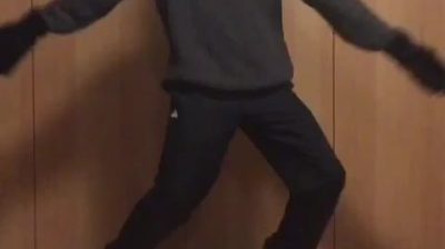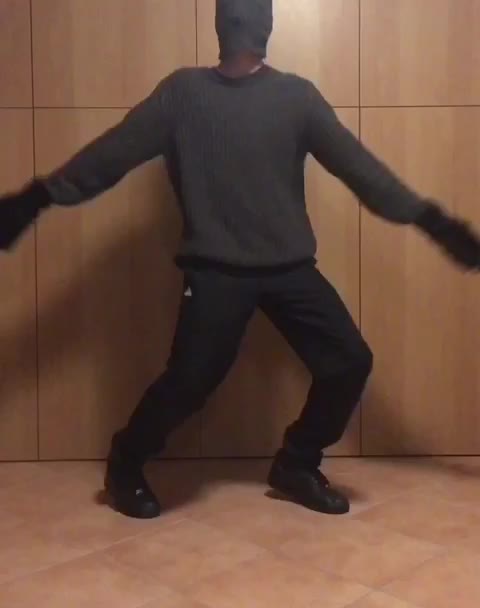 男は台所のドアのガラスをとてもよく掃除します, しばらくすると、彼は自分自身につまずきます。.