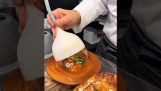 工場の生産ライン内で数秒, アイスクリームを作る.