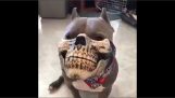 男が初めてJabberMaskを試す, 口の動きを検出し、それらを投影するマスク...