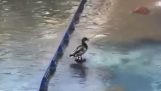 アヒルのお母さんカラスからの彼女の雛を保護します。