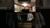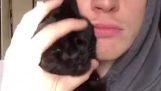 この猫は彼の口の中で彼のベッドでキャビネットの上にありました. 彼はどこか別の場所に寝たかったです,。...