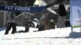 車凍った湖の水にスティックをリモート制御するとき, 小さいクレーンは綱引き. 2台の車両は・・・.