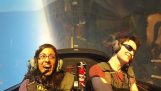 キシロフォンとドラムを使用します, 2人のミュージシャンが空港でのマイクの発表を完璧に模倣しています.