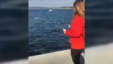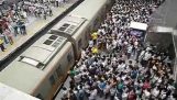 ブラジルの地下鉄駅, 若い女の子は非常に幸運だった. レールの上に落ちていたが彼女の携帯電話をキャッチしよう, 保護者の助けを借りて通過列車によって最後の最後で免れた, 彼は、プラットフォーム上に急速にプル.