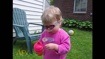 少し話題笑いに彼の頭を笑うときにタンポポを吹く彼のお父さん.