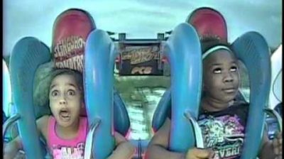 2 人の女の子、スリング ショットに乗ってフリークします。