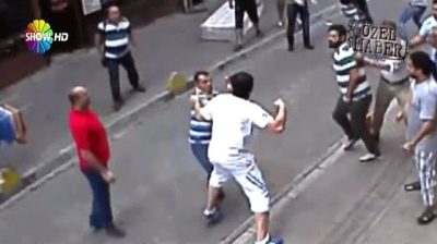 イスタンブールのアクサライ地区に数日前, アイルランドの観光ブースを訪問し、水のボトルを取得する冷蔵庫のドアを開けた. 突然少し冷蔵庫を開けたが、, ボトルの数十は、地面に落ちたと. 怒っています。, トルコの所有者は観光で攻撃し、棒で殴った, その間、通行人や他の業者も「戦い」に参加した. アイルランド人とトルコ人の間の道路上に噴出した偉大な行, 人はそれを知らなかった彼の空き時間にボクシングで彼らの相手の proponoytan.