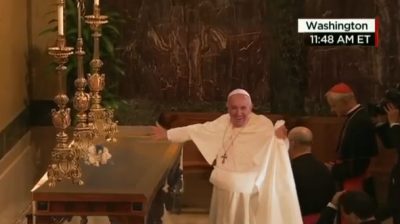 彼の最近の間に訪問し、ワシントン大聖堂に横たわっている間、米国, 教皇 Francis は出席者を面白い素敵なスタント.