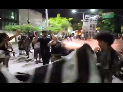 ブラジル レシフェ市からのビデオ表示警察官彼の帽子は抗議でノックした後、抗議者で撮影 バナー. 事件は10月1日に占拠Estelitaの抗議中に発生しました, ホセでの民間不動産開発に対する2015年 市内の歴史的な中心部に Estelita 桟橋.