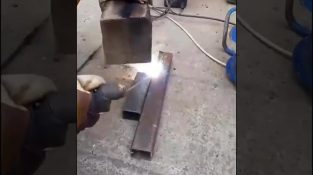 溶接工はトリックを使用して2つの金属片を平行に接着します.