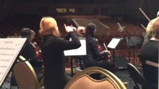 何が起こるかロシアの音楽家アナスタシア Konopleva は私たちを示しています, ときのハープなしオーケストラ リハーサル.