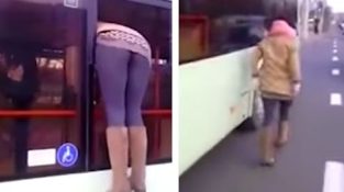 女性がミンスクで見事チケットを支払うことを避けるためにバスの窓を通って脱出します。, ベラルーシ