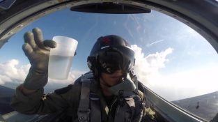 ボトルからグラスに水を置くことによってパイロットは物理学実験します。, 一方、戦闘機平面内にあります。. それから水を飲む, そして、この空気の逆スピンをしながら. 、 [...]