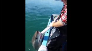 厄介なサメはオーストラリアの漁師のために生活が困難に, かむネット. 漁師は…呪いで反撃するだろう. 唯一のオーストラリアで、我々が見ることができるシーン.