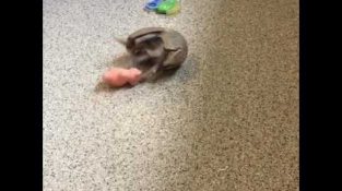 Rollieアルマジロはお気に入りのおもちゃで遊びます