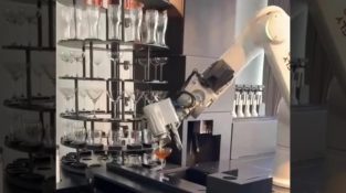 中国の杭州市で完全に自動化されたホテルFlyzooホテルで, ロボットのバーテンダーがカクテルを準備する.