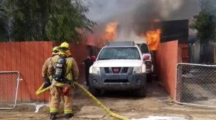 カリフォルニア州から男が先に消防士の早めと彼の犬を救うために燃えている家に入ります.