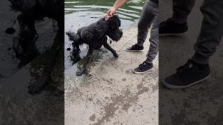 倉庫内, 2匹の子犬は、テーブルの上に登ると天井からロープ吊りをキャッチするためにジャンプ. 子犬は、ロープスイングを行います.
