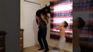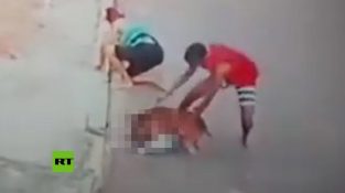 若い男は、リオ・デ・ジャネイロ、ブラジルのピットブル犬の攻撃から5歳の男の子を保存しました. 防犯カメラで録画されたビデオで, パトリック・スカイο, 20年, 子を配置 [...]