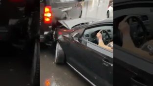 オーストリアの路上で, ドライバー・バンに衝突したが、警察を待ちたいとポイントを残してしようとしていません. しかし、ほとんど損傷を受けた彼女の車を開始しました, ウィル [...]