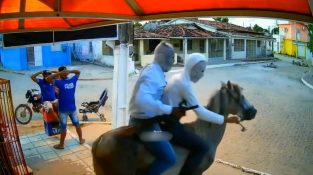 ブラジルの2人の泥棒は、店で強盗を犯すための脱出手段として馬を使用しています.