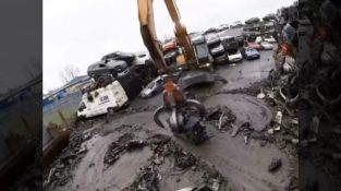 カーヤードで, クレーンのオペレーターが細心の注意を払って地面を掃除します.