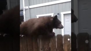 カリフォルニア州で, 家の所有者は面白い光景を記録しました. クマは彼らの庭を渡りたかった, そしてどういうわけか彼は木のフェンスの上を歩いてそれをすることに決めました.