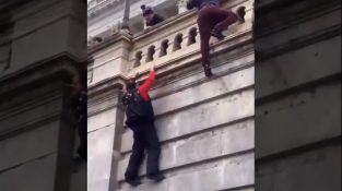 男が家の屋根からクリスマスの飾りを取り除いていた, そして突然彼の犬と顔を合わせて発見されました. Οエース, ゴールデンレトリバー, はしごを使って屋根に登った. 第二部では [...]