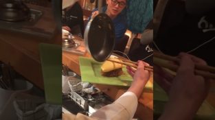 日本、京都の吉吉レストランの幸村シェフが有名なオムレツを用意. オムリスはオムレツに包まれた風味のグリルライスです. アジア料理と西洋料理の組み合わせです. [...]