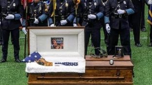 Οキット, アメリカ合衆国、マサチューセッツ州の警察犬, 武装した犯罪者を動けなくしようとして職務上殺された. 2021年6月22日, ジレットスタジアムで英雄の栄誉で埋葬された.