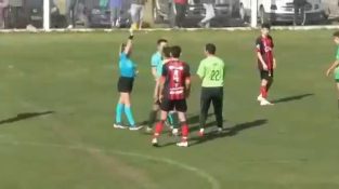 サッカー選手が審判を攻撃する