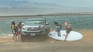 出港する船が高速でデストラを打ち上げる