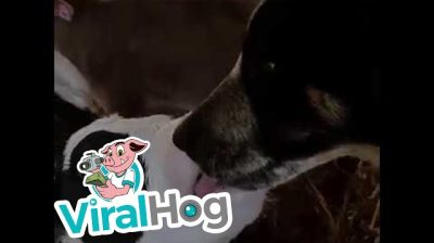 달콤한 엄마 개는 버려진 새끼 고양이 피드
