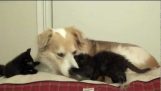 특이한 관계는 개 싸움위한 길 잃은 새끼 고양이 및 친절한 핏불 사이에 시작. 함께,