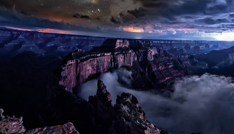 영화 제작자 하룬 메 메디 노빅 애리조나 그랜드 캐년에 구름의 파도와 저속을 생성, '반전 층'이라는 희귀 한 현상 중.