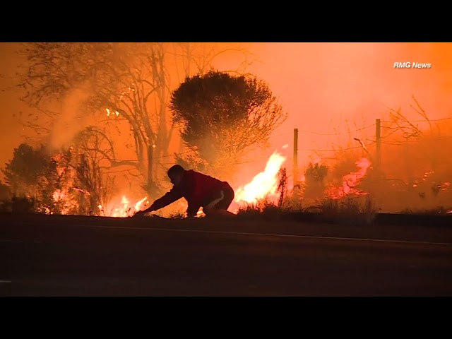 남자는 고속도로에서 중지와 약간의 야생 토끼를하기 위해 차에서 내렸다. 동물은 당황하고 화재 불길을 탈출을 시도했다, 벤추라는 남부 캘리포니아에있는 지방을 명중.