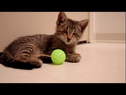 이 새끼 고양이는 생후 8주이고 시각 장애인으로 태어났습니다.. 여기는 처음은 일부 개체, 즉 공 종 포함 된 재생.
