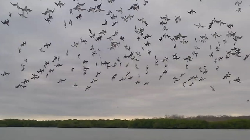 갈라파고스 제도, 블루 술라의 큰 무리를 동시에 물고기를 잡으려고 물에 뛰어. 자신의 먹이를 잡으려고, 블루 소울은 최대 20미터 깊이까지 잠수할 수 있으며 30초 동안 물 속에 머무를 수 있습니다.. 블루 술라는 주로 작은 물고기에 피드 퍼핀한다 (정어리, 멸치 등).