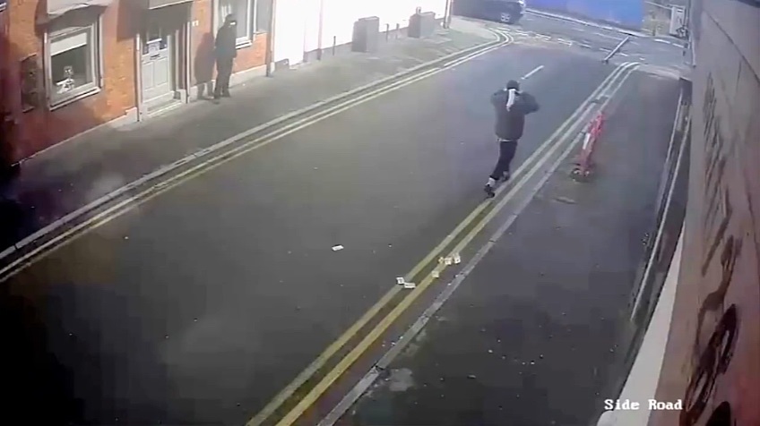 도시 Droylsden 영국에서 3월 17일 (토요일), 재킷을 떠날 때 단지 여행사를 훔친 도둑 거리에 돈을 잃는다. 강한 바람은 지폐를 멀리 품으로.