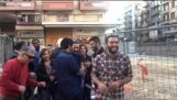 그리스 경찰의 남자. 그들은 지점에서 출발하는 그에게 물었다, 음악 강하게 반응하고 소리 시작으로.