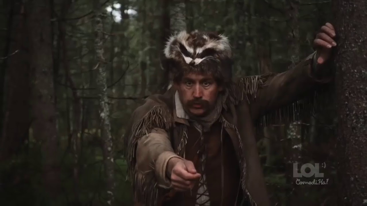 숲에서 남자, 다람쥐를 잡으려고 노력. 캐나다 시리즈 LOL ComediHa에서 짧은 재미있는 농담!