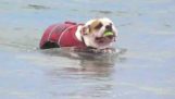 영어 불독에 잠들 려 고 노력 하는 할아버지의 아주 귀여운 동영상.