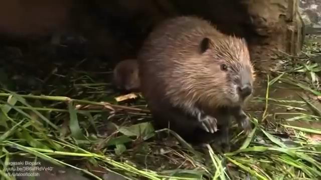비버 엄마는 그녀의 작은 아이를 잠들게합니다., 하지만 둥지에서 나와 헤엄 치고 싶어합니다.