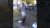 남자는 아마 아직 얼음이나 젖은 칠면조를 넣어 시도,
