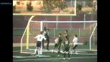 뚱뚱한 남자가 큰 높이에서 수영장으로 다이빙, 혼돈의 원인.